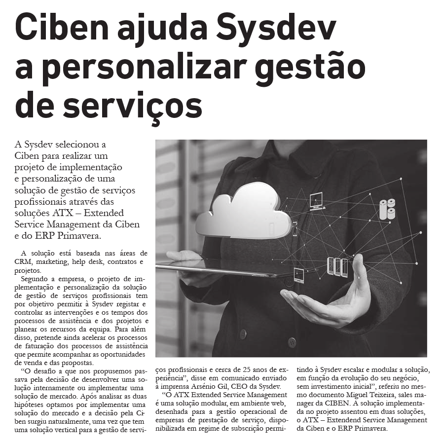 A Sysdev selecionou a CIBEN para realizar um projeto de implementação e personalização de uma solução de gestão de serviços profissionais.